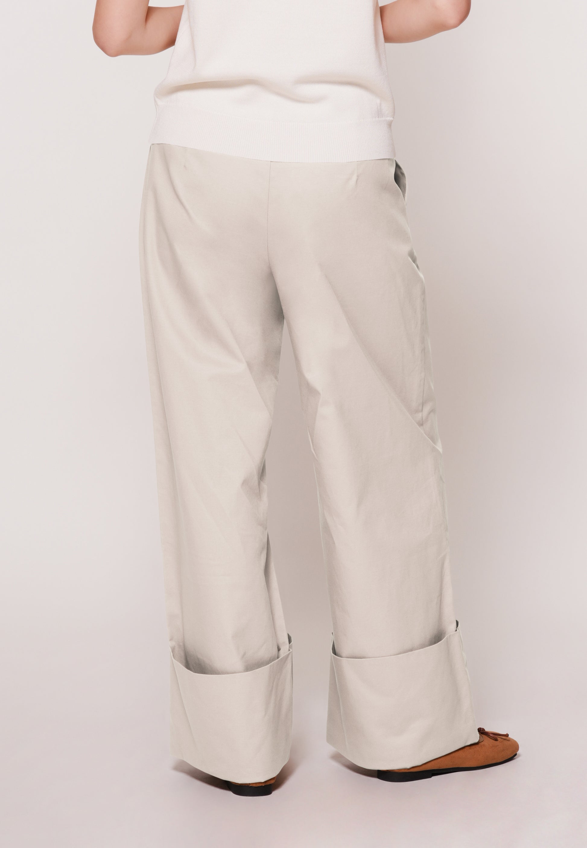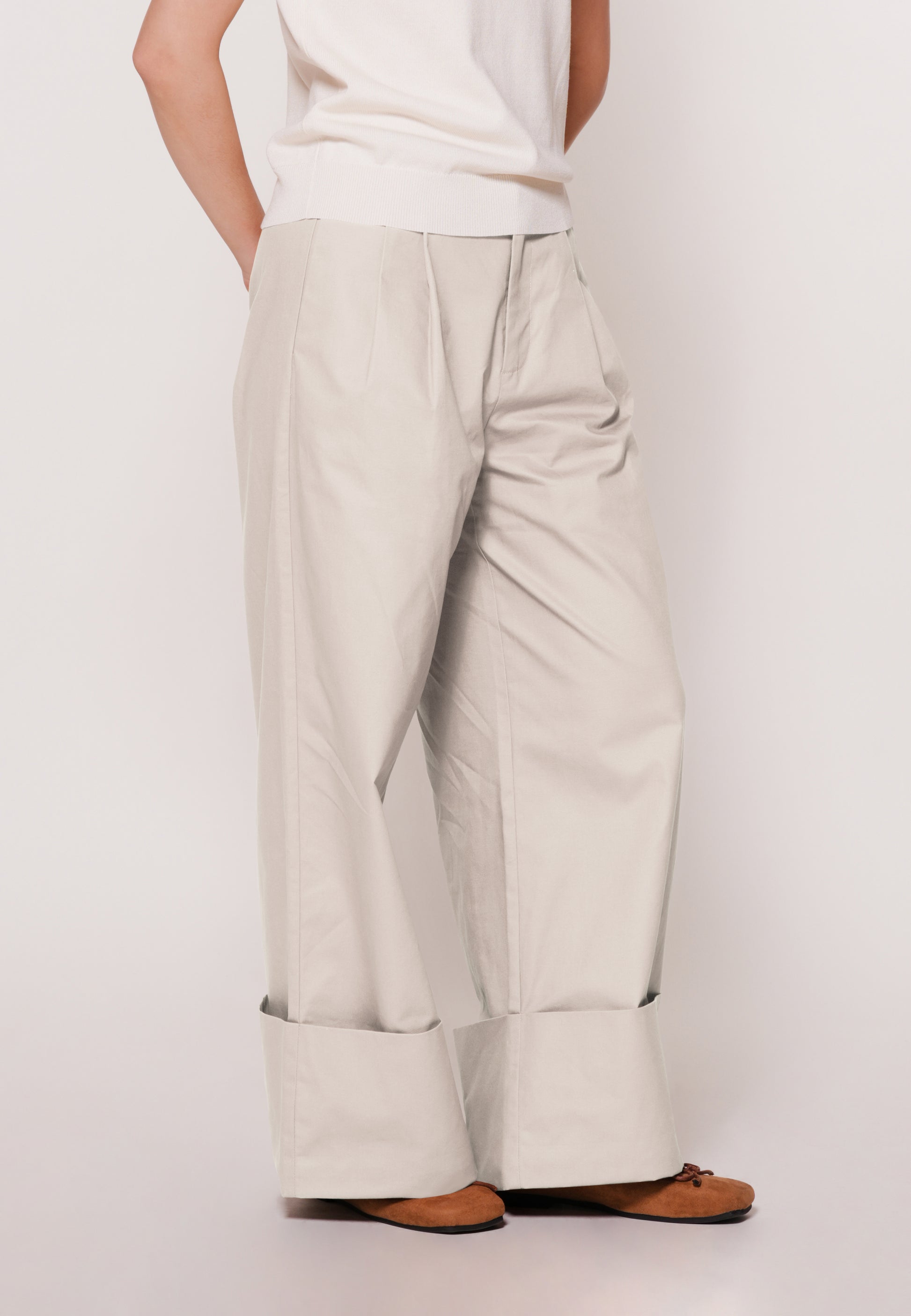 Pants made from polyester, designed in a straight silhouette with a high waist for a flattering fit. Featuring a front zip opening, side pockets, and folded cuffs, they are finished at normal length for a clean and versatile look.