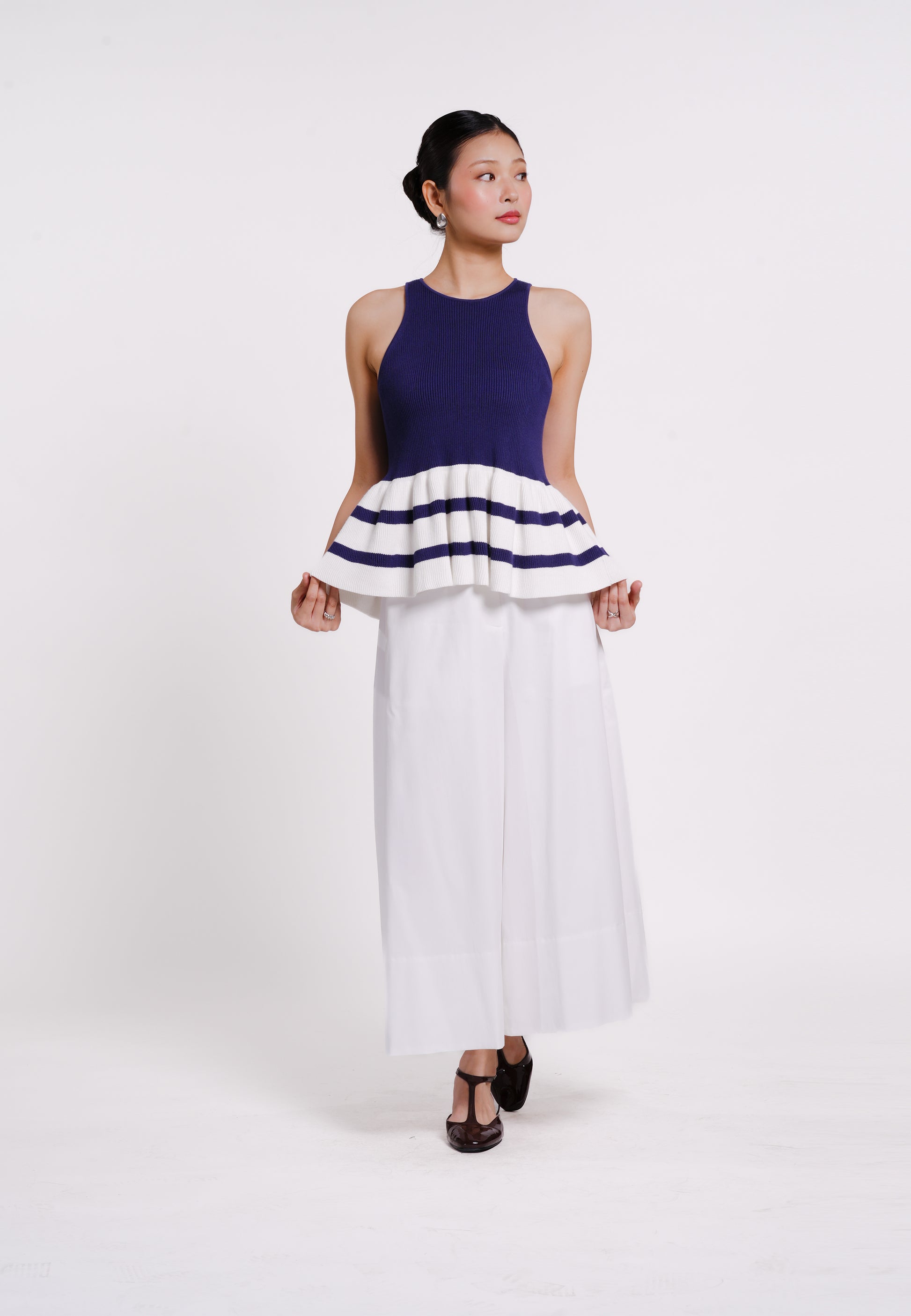 Benzon Sleeveless Top (Navy/White)