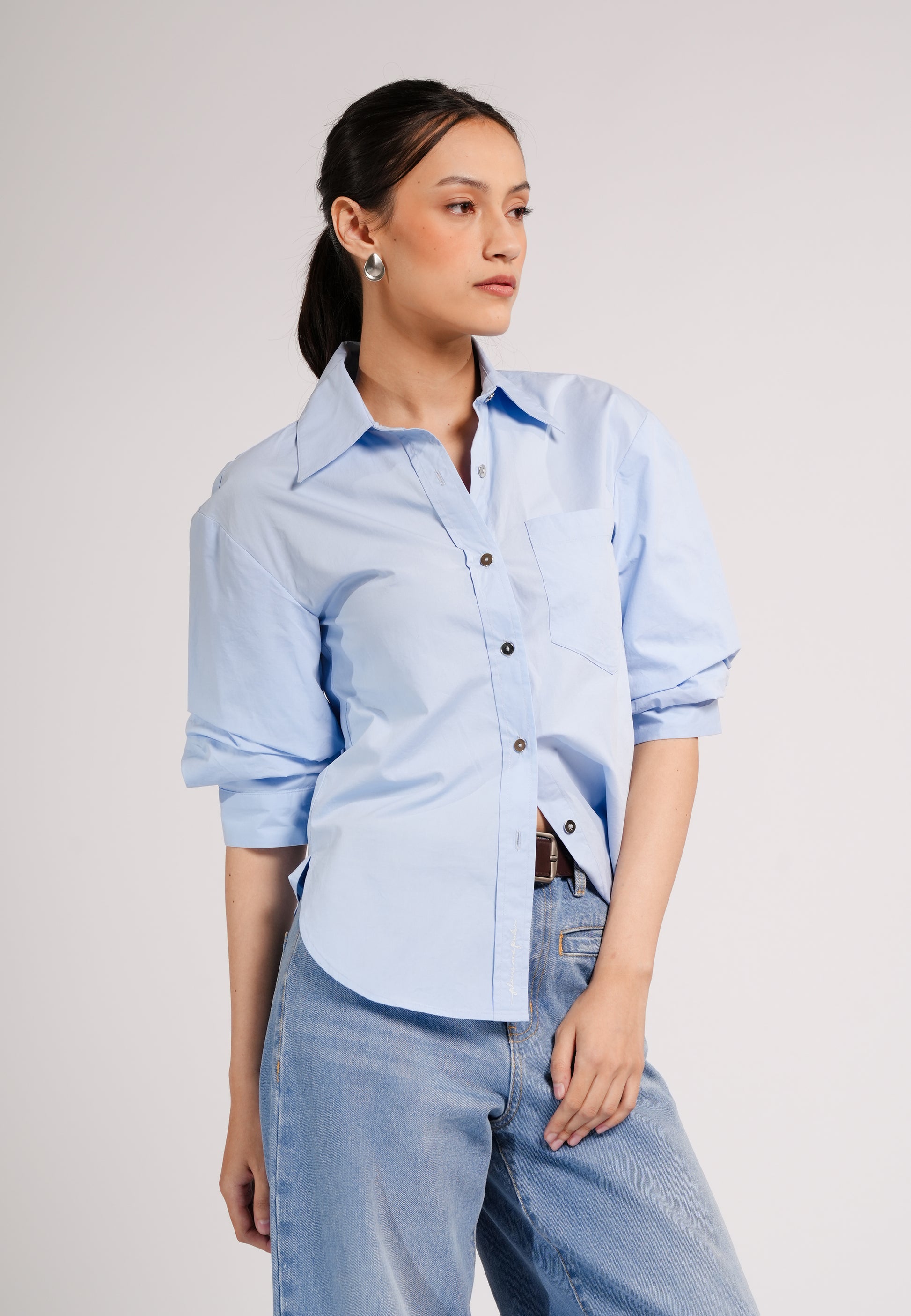 Refresh your casual wardrobe with this Plains and Prints Relaxed Fit Top, designed for effortless style and comfort. Crafted from crisp cotton, it features a classic collar and a front square pocket for functional charm, while a small embroidery detail adds a delicate, artistic accent. A front button-down opening maintains a timeless appeal, complemented by quarter sleeves with fixed ruching detail for added texture and shape. Finished in a regular length with a relaxed silhouette, it’s the perfect versatile piece for casual days or smart-casual styling.