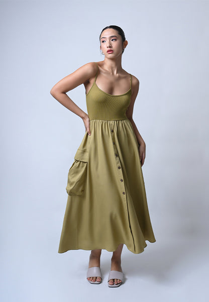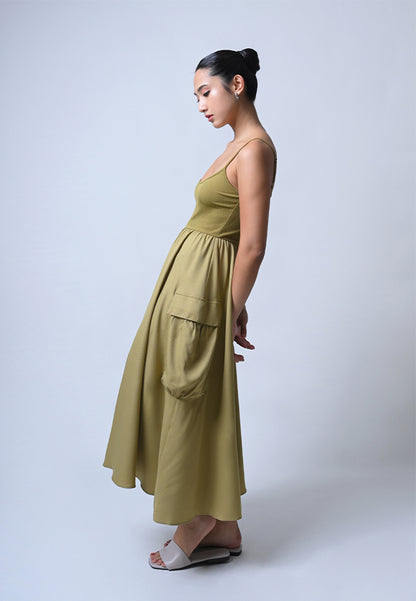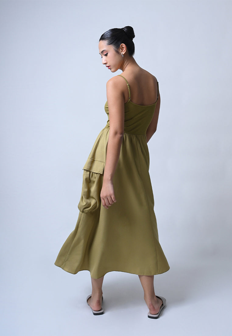 It's all about the pockets, darling! Storage ain't no problem with the Fross dress, featuring a sleek bodice with a statement skirt with oversized pockets that create a drapey effect on the piece, changing the whole silhouette.