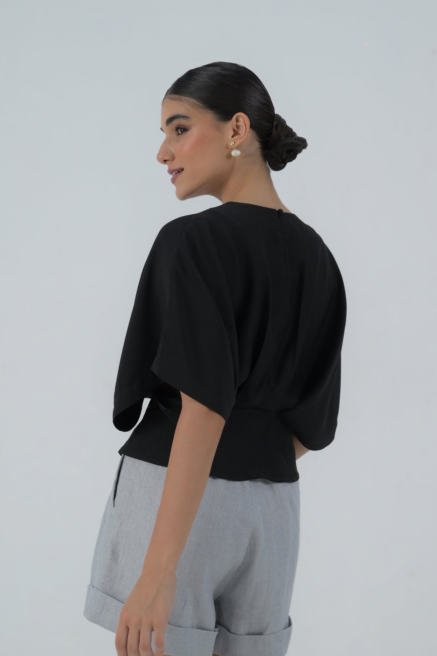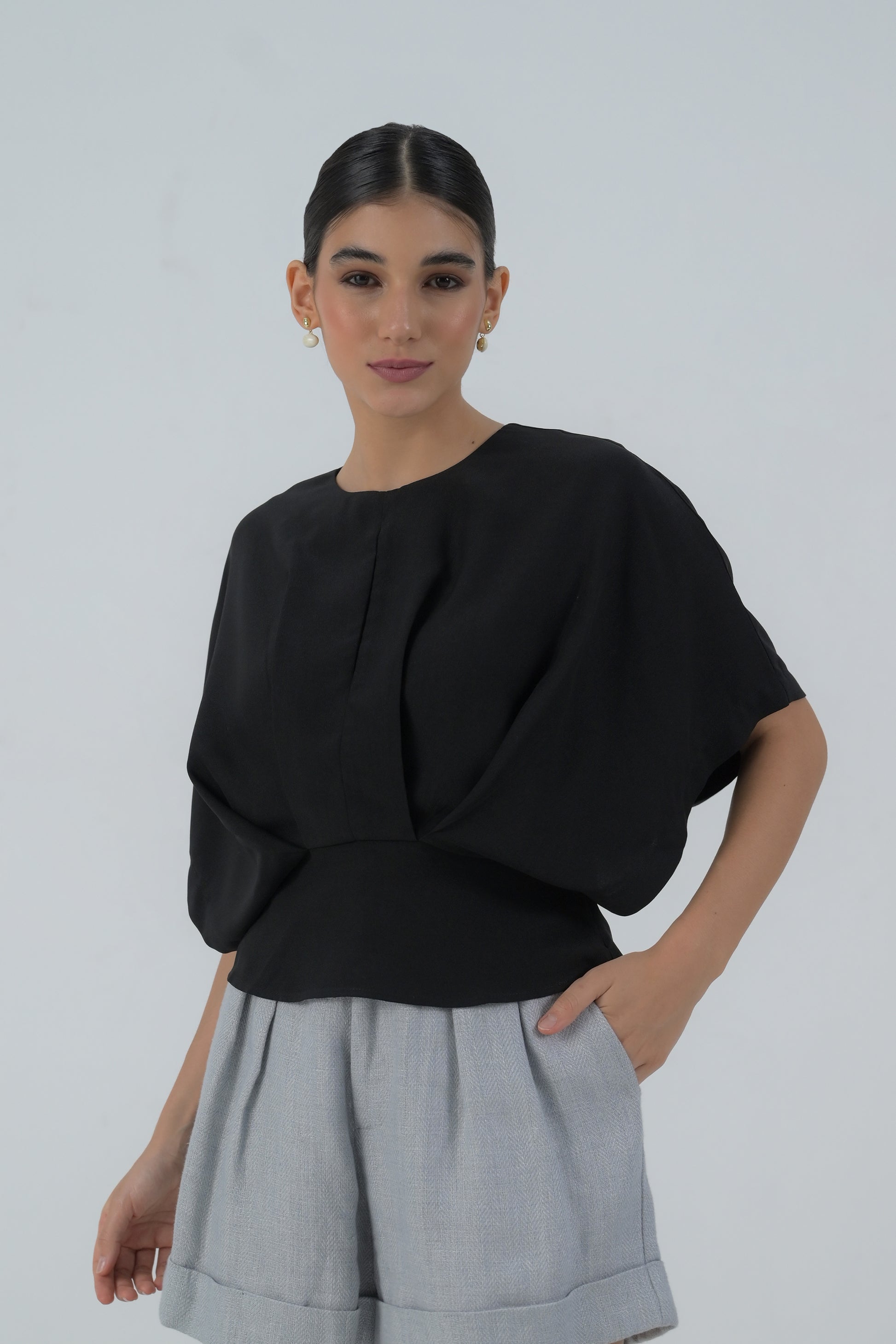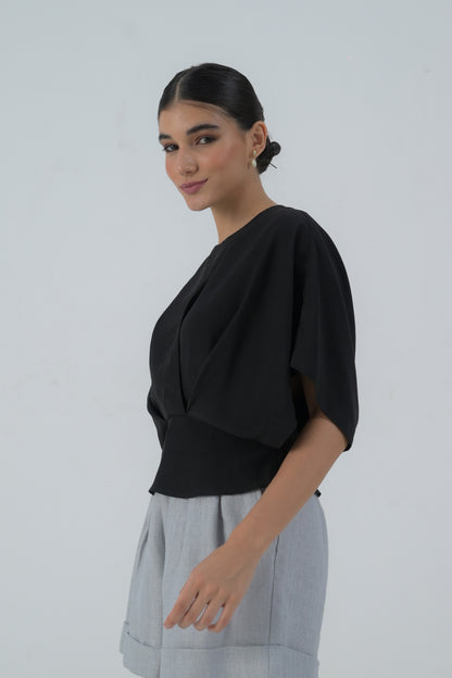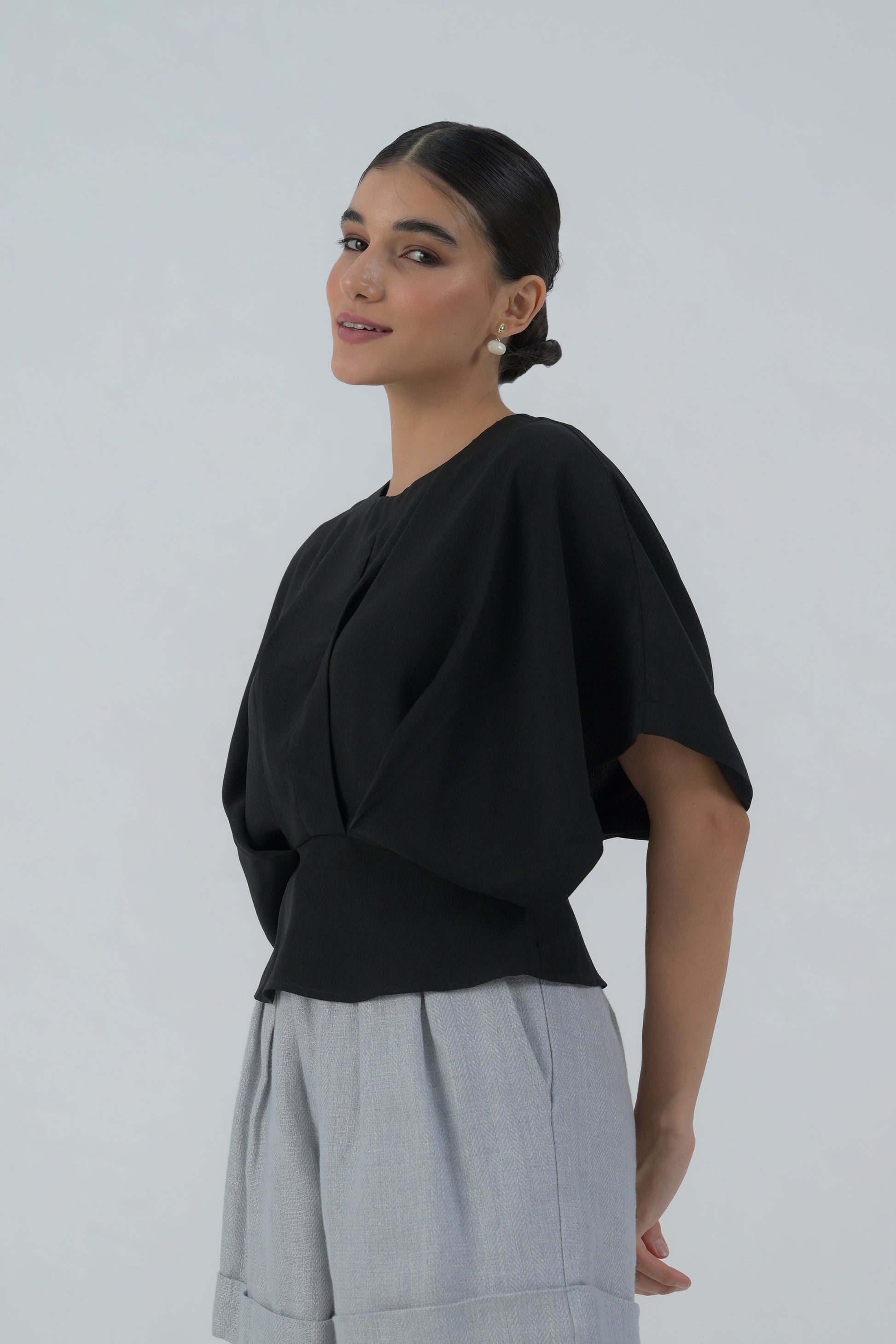 Chic monastic. Alluring folds create an undulating vibe to the Doha top, featuring elegant pleats and folds across the bodice, secured at the waist.