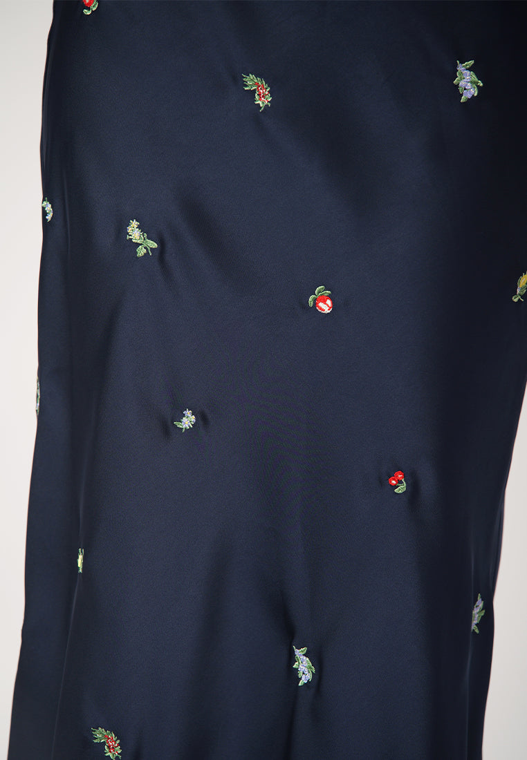 A midi skirt made in viscose-blend satin, featuring a high-waisted design with a clean-finish gartered waistband. Cut in an A-line bias for a graceful drape and elegant movement.
